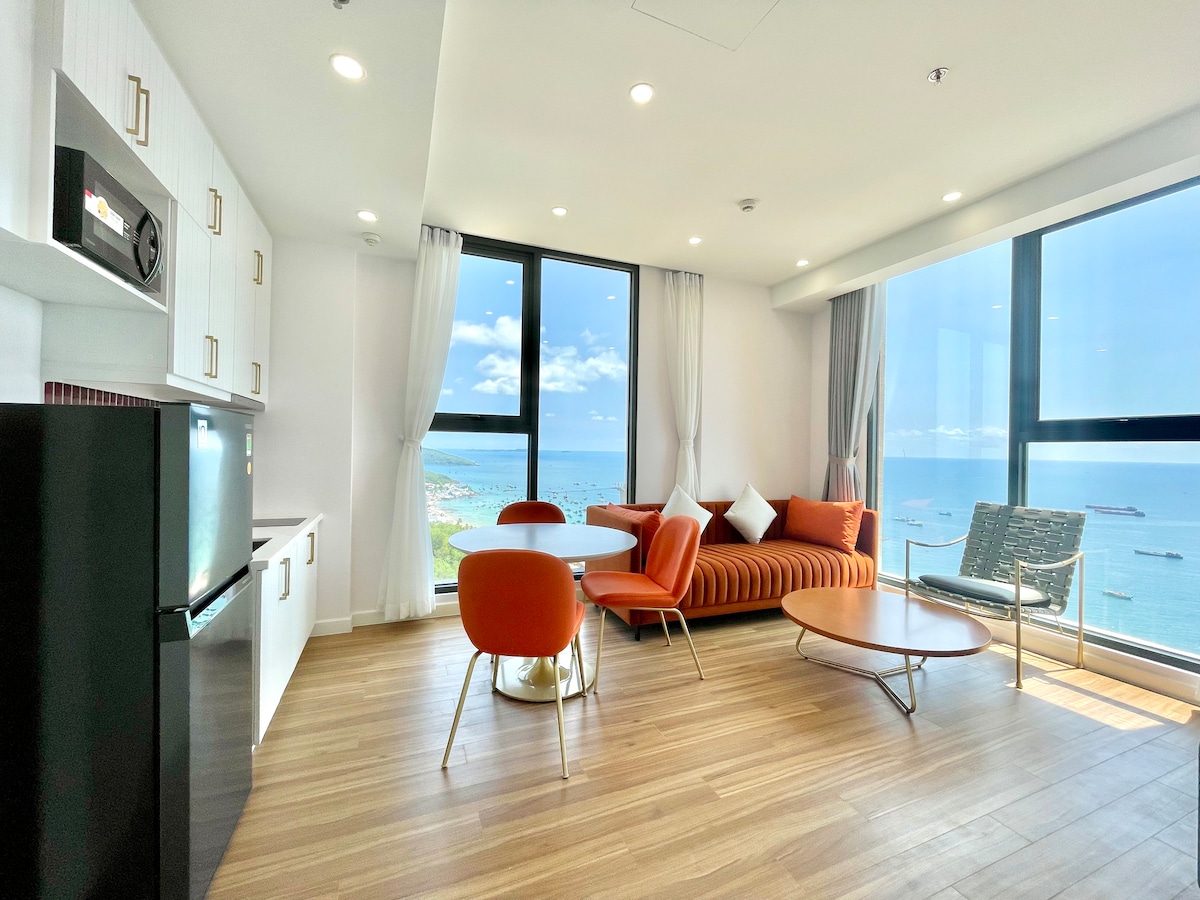 Disfruta de una estancia completa en el condominio frente a la playa: - Espacio acogedor, sala de estar y dormitorio con vistas directas al mar, puesta de sol, fuegos artificiales. - Gratis: gimnasio, piscina infinita en la azotea, club infantil. - Muebles completos: aire acondicionado, nevera, horno microondas, lavadora, utensilios para cocinar,... Radio de 1 km: DIVERTIDO mercado nocturno - FEST Bazaar, minimercado, restaurantes, playa, obras de iconos: teleférico, propuesta de matrimonio, ...
