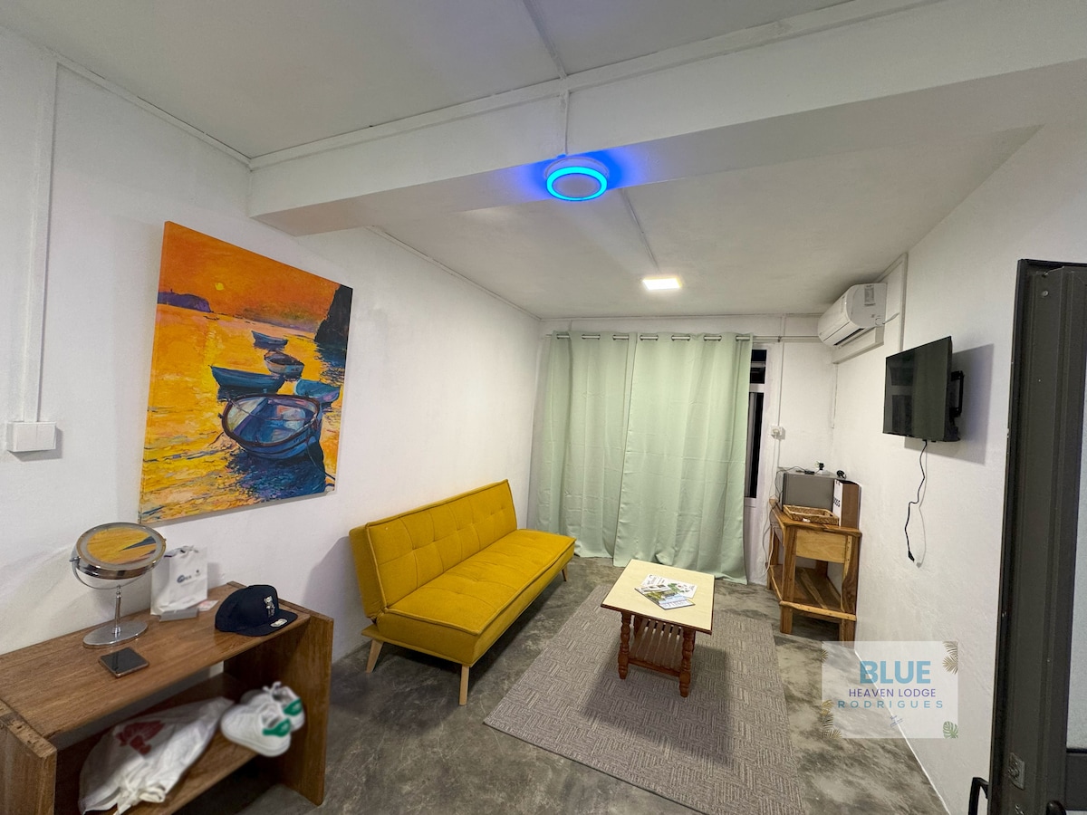 Sueña con vivir a orillas de la laguna de la isla Rodrigues con impresionantes vistas de la laguna de Mourouk. Este estudio consta de cocina nevera ,hervidor de agua,cafetera, cocina de gas, un cuarto de baño con inodoro una cama doble de 1.40 con toallas de baño. Una terraza con vistas a la laguna. Actividades cercanas: Kitesurf, paseos en barco, snorkel, Senderismo y exploración de playas salvajes, este estudio tranquilo , cerca de actividades acuáticas y locales.