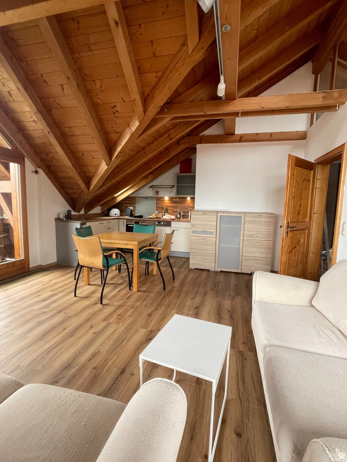 Alquilamos un acogedor y amueblado con cariño apartamento de 2 habitaciones en la planta superior de una original casa de campo bávara con balcón orientado al sur y jardín paradisíaco para 4 personas. La casa se encuentra en una zona residencial tranquila, a 10 minutos a pie de la estación de tren y del centro de la ciudad con todas sus tiendas. Un hermoso bosque está cerca. Las excursiones a Múnich y a la hermosa campiña bávara se pueden hacer fácilmente en coche o en tren. Puedes hacer uso del jardín y de las bicicletas.