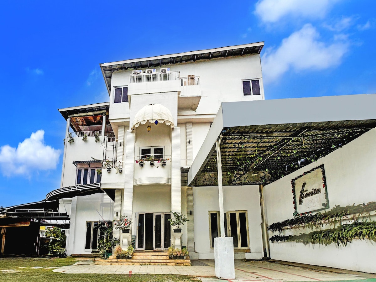 ¡Hola! Alójate en Banda Aceh en esta tranquila unidad autónoma. Este alojamiento está convenientemente ubicado en el nivel 2, con acceso desde tu propia entrada privada, a través de escaleras desde el lateral del edificio, donde puedes estacionar tu coche. No compartirás ningún espacio común con la casa principal y tendrás acceso privado a la cocina junto a tu habitación en el balcón. El complejo de viviendas tiene servicio de seguridad las 24 horas, los 7 días de la semana Ubicado a solo 15 minutos del centro de la ciudad.