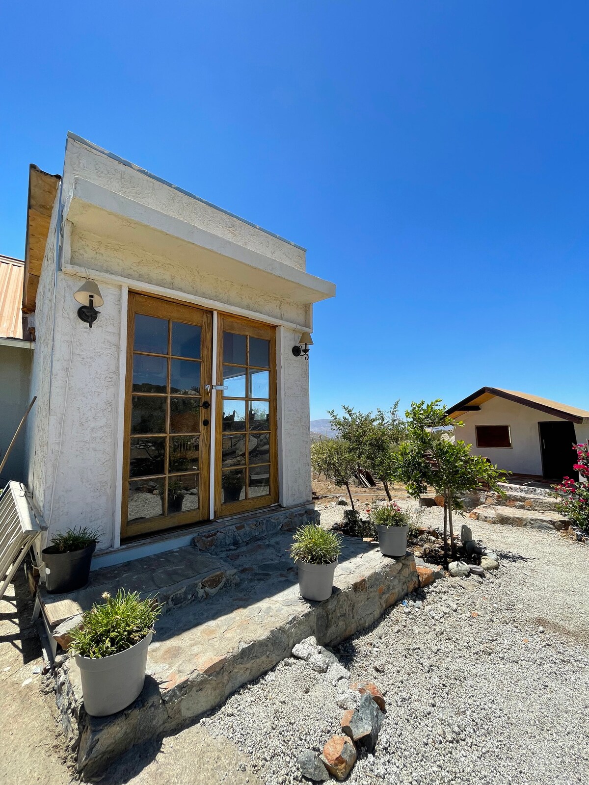 ¡Hermosa cabaña con vistas increíbles y puesta de sol impresionante! Espacio abierto para todas tus actividades al aire libre y hermoso cielo lleno de estrellas después del atardecer. Perfecto para disfrutar en paz, lejos de la ciudad y cerca de algunos de los mejores restaurantes de la zona, a solo 30 minutos del Valle de Guadalupe y 15 minutos del Valle de las Palmas. Electricidad por paneles solares y agua por rotoplas, estacionamiento privado, caseta de seguridad.