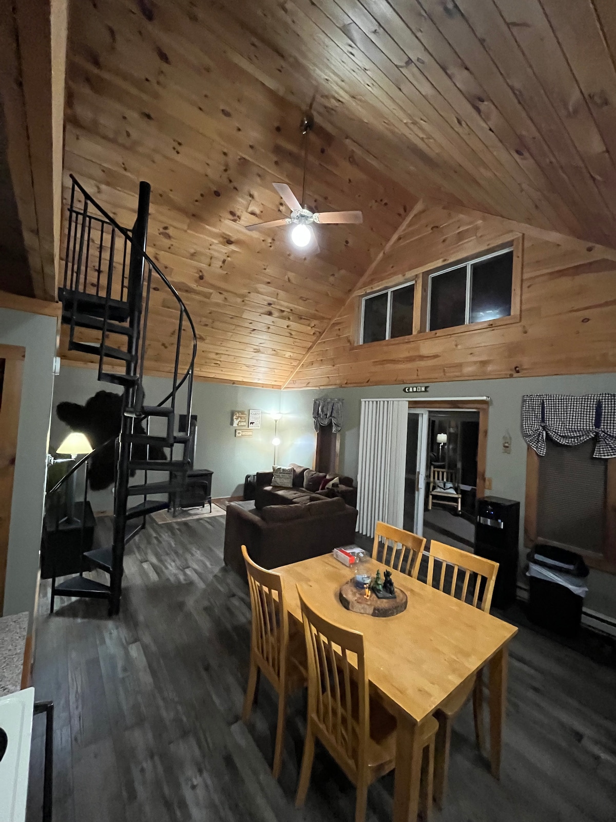 Soak in the Adirondacks from this rustic, newly remodeled one-bed apartment with a king size bed, full kitchen and bathroom. Start your day with a beautiful view of the sunrise over the Moose River. Feel free to launch one of our kayaks from our private dock, watch the stars from the hot tub or by the fire pit, take a bike ride on our bikes or just watch the amazing wild life and sunset from your private deck. Close to restaurants, shopping, hiking, and all of the summertime fun in Old Forge.