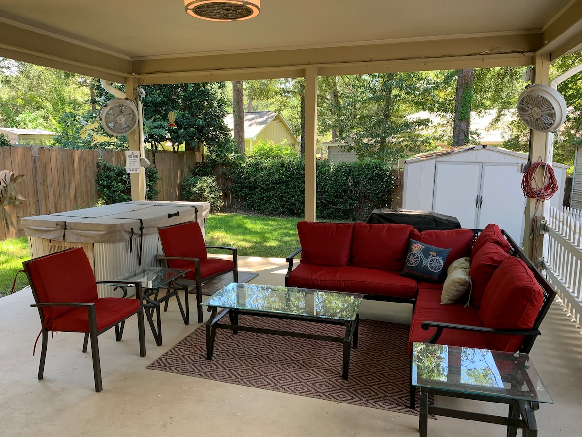 ¡Bienvenido! Disfruta de la elegancia de nuestro hogar en Olde Towne Daphne. Esta casa bellamente decorada ofrece total privacidad y un plano de planta abierto, con mucha iluminación natural, una amplia cocina, techos abovedados, una acogedora sala de estar, una piscina cerrada de agua salada y spa, y un enorme patio para descansar y cenar. Situado a 2 minutos del centro de Daphne y a 5 minutos del centro de Fairhope. Ofrecemos una barra de café y té totalmente surtida, 2 parrillas y un altavoz portátil.