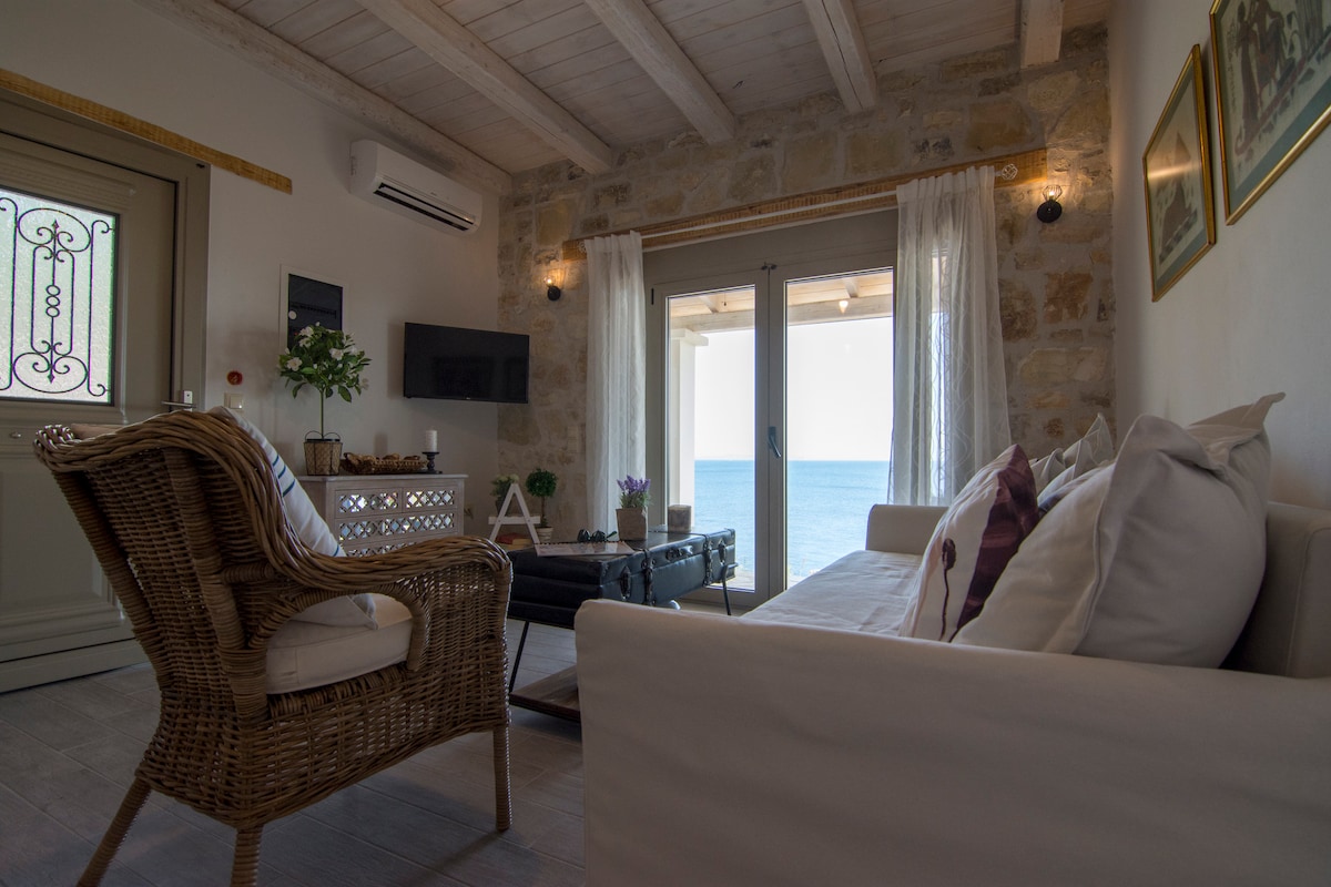 Το studio βρίσκεται ακριβώς πάνω στο κύμα, σε μια απολύτως ήσυχη περιοχή. Ο χώρος προσφέρει απόλυτη ιδιωτικότητα. Η παραλία ακριβώς μπροστά στο σπίτι είναι αποκλειστικά για εσάς. Μπροστά υπάρχει μεγάλη βεράντα με απεριόριστη θέα στο απέραντο γαλάζιο. Πίσω υπάρχει μικρός ελαιώνας με άνετο χώρο στάθμευσης, μπάρπεκιου και μικρός λαχανόκηπος που όλα το προιόντα του προσφέρονται δωρεάν στους επισκέπτες. Ο χώρος είναι μοναδικός, ιδανικός για χαλάρωση και ήρεμες διακοπές.