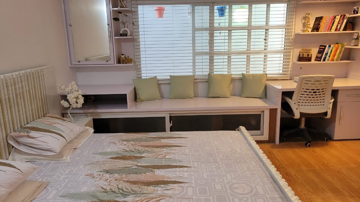 Blissful Stay – Royal Retreat es una gran casa de 3 dormitorios perfecta para grupos y familias. Cuenta con dos salones y una cocina completa para comidas fáciles. Todas las habitaciones tienen aire acondicionado y baño privado. En el exterior, puedes disfrutar de una enorme sala de estar con una parrilla para barbacoa y estacionamiento privado para 4 autos. La casa tiene capacidad para 6 personas cómodamente con espacio adicional para dos colchones. Ya sea para una estancia larga o una escapada rápida, este alojamiento ofrece mucho espacio y comodidad para que todos se relajen con estilo.