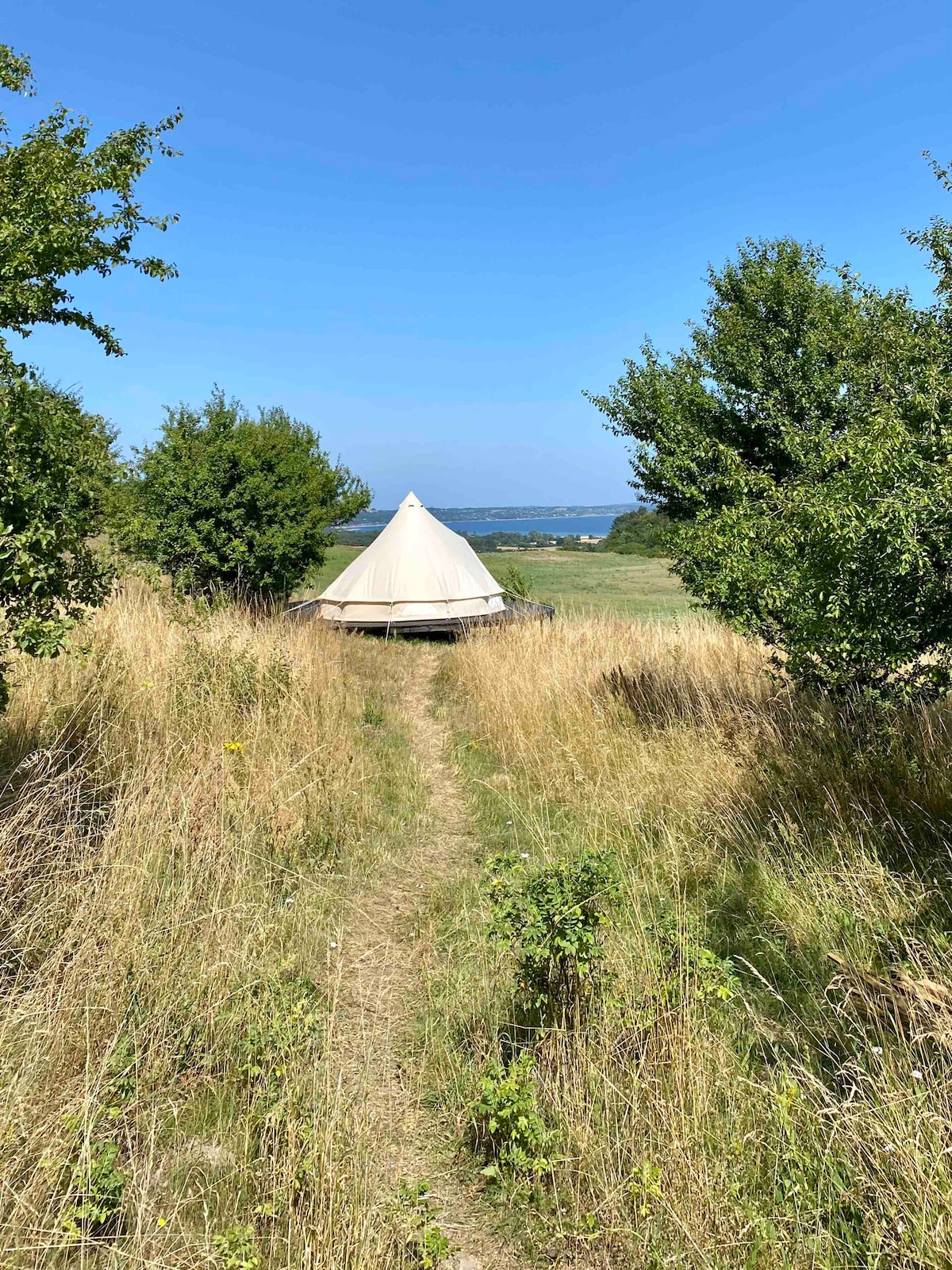 Serenidad y vistas al mar La tienda está ubicada por sí sola en medio de mi área natural salvaje hasta Mols Bjerge Buena cama, sábanas recién lavadas y mantas cálidas. No hay electricidad, trae un banco de energía, luces de hadas y linternas en la tienda. No hay agua. El mar está a 20 minutos a pie de la tienda a lo largo de un hermoso camino de grava. Elegante y simplemente amueblado Inodoro de campamento primitivo junto a la tienda de campaña protegido por una cerca de pilotes Adecuado para comida traída de forma sencilla. La granja Fuglsø ofrece desayuno tipi, que usted mismo pide poniéndose en contacto con Elisabeth sms 21622113