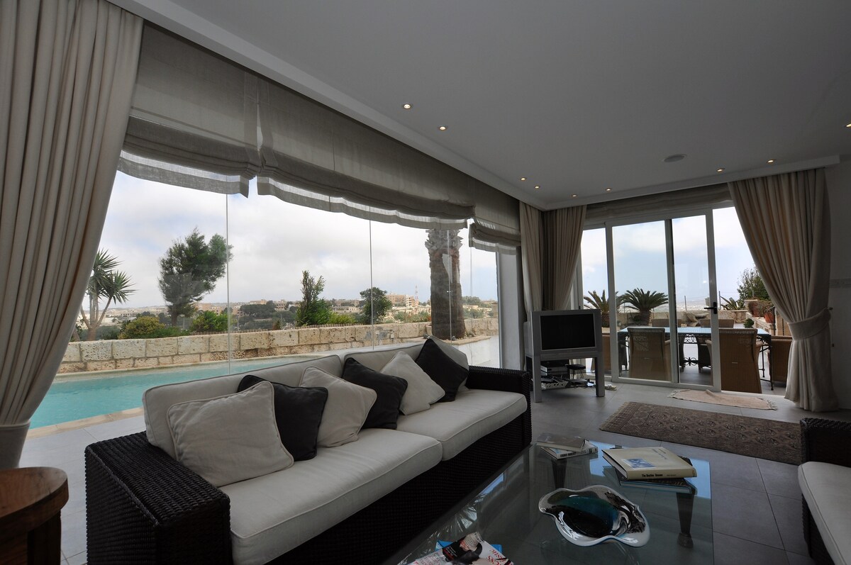 Panorama Lounge se encuentra en el tranquilo y apacible pueblo de Mgarr, cerca de algunas de las playas de arena más bonitas y espectaculares lugares para ver el atardecer. El apartamento cuenta con piscina privada (disponible todo el año y climatizada a una temperatura media de 27 grados centígrados) con jacuzzi incorporado, así como una enorme terraza con vistas panorámicas al campo. Panorama Lounge es ideal para quienes buscan una escapada única y tranquila.