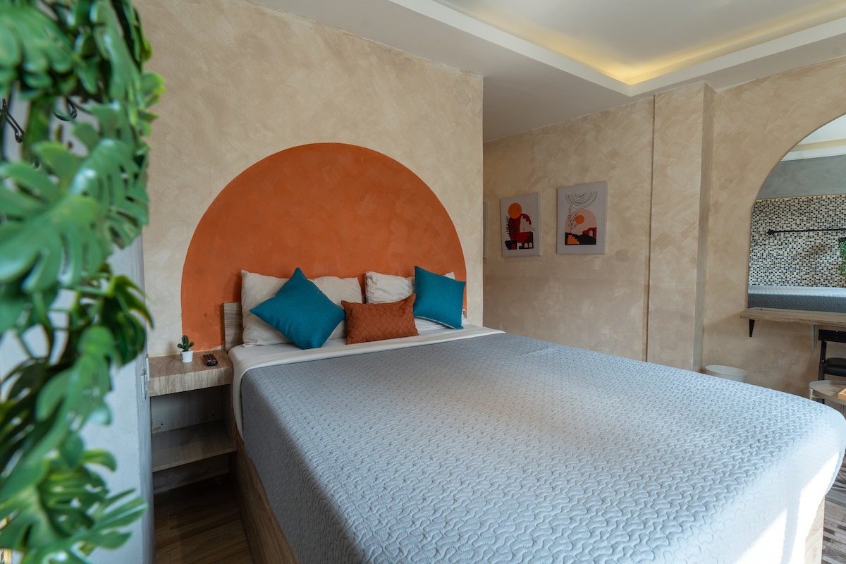 Disfruta de una vida refinada en esta suite ejecutiva en el último piso diseñada para la comodidad, la privacidad y el estilo. Esta espaciosa unidad ofrece una verdadera sensación de lujo, perfecta para los huéspedes que valoran la paz y la exclusividad. Ubicado en el último piso, ofrece un ambiente tranquilo y privado, ideal para relajarse o concentrarse en el trabajo. Perfecto para viajeros de negocios, parejas o huéspedes que buscan una experiencia exclusiva y de primer nivel en un entorno sereno.