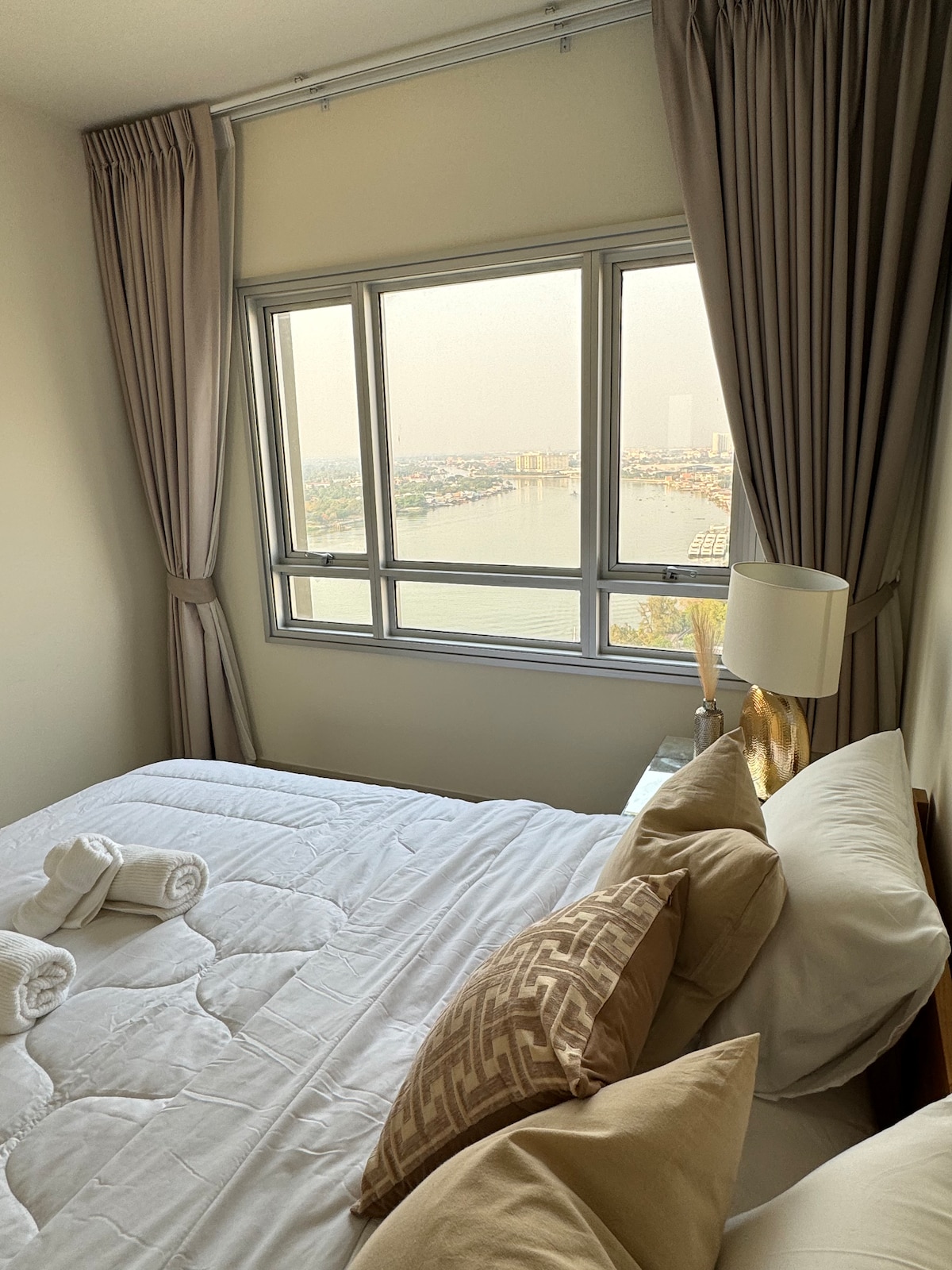 La estancia con las vistas más bonitas del río Chao Phraya. Instalaciones de hasta 3 piscinas con nuestra exclusiva piscina infinita con impresionantes vistas al río Chao Phraya. Gimnasio en la parte superior de la piscina Sky Pool con impresionantes vistas al río también. Casa club con sala de juegos, espacio de coworking, piscina con jardín frente al mar. Tipo de habitación: 1 dormitorio, 1 sofá, 1 sala de estar, 1 baño, 1 cocina pequeña con un tamaño de 32 metros cuadrados. Vista: balcón en el dormitorio y zona de cocina con vistas al río Chao Phraya.