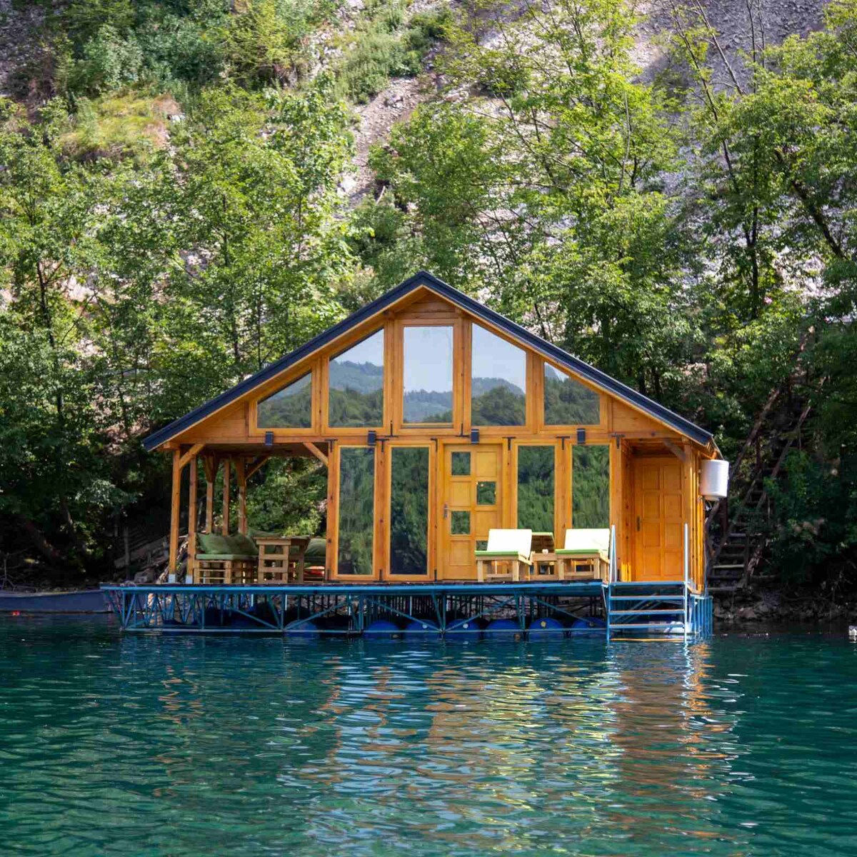 Este lugar inolvidable es de todo menos ordinario. Rodeado de naturaleza virgen, situado en el Parque Nacional de la montaña Tara. Te sorprenderá el color surrealista del lago Perućac, mientras disfrutas de nuestra acogedora y luminosa casa flotante. Si eres fan de unas vacaciones activas, te encantarán las 2 tablas de surf de REMO que te proporcionamos.