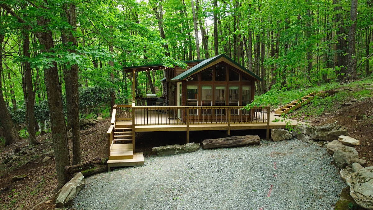 La mayoría de los Wish List de Airbnb en los Estados Unidos • Verano 2022 ¿Buscas una escapada romántica de lujo moderna para dos? ¿Un retiro tranquilo en la montaña para volver a conectarse con la naturaleza y entre sí? Relájate y relájate en Glass Treehouse. Disfruta de una escapada a un bosque con cascadas con rocas gigantes. A minutos de restaurantes, cata de vinos, cervecerías, tiendas, galerías de arte, senderismo, esquí, canotaje y mucho más. Con una ubicación céntrica entre Boone, Blowing Rock, Banner Elk, Grandfather Mt, Sugar Mt.