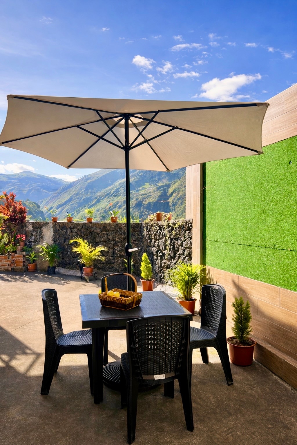 Lo encontrarás todo! Disfruta Baños desde las alturas en esta suite con terraza privada en el corazón de la ciudad. Relájate bajo el parasol, despiértate rodeado de un gran ambiente y vista. Descubre el centro, sus encantos y todo el entretenimiento a solo unos pasos de distancia. Ideal para desconectar y vivir una escapada romántica o una pausa renovadora. Y lo mejor! podrás elegir tu desayuno en una de las mejores cafeterías de la ciudad, Plaza Bolívar (No aplica en Martes ni Miércoles)*