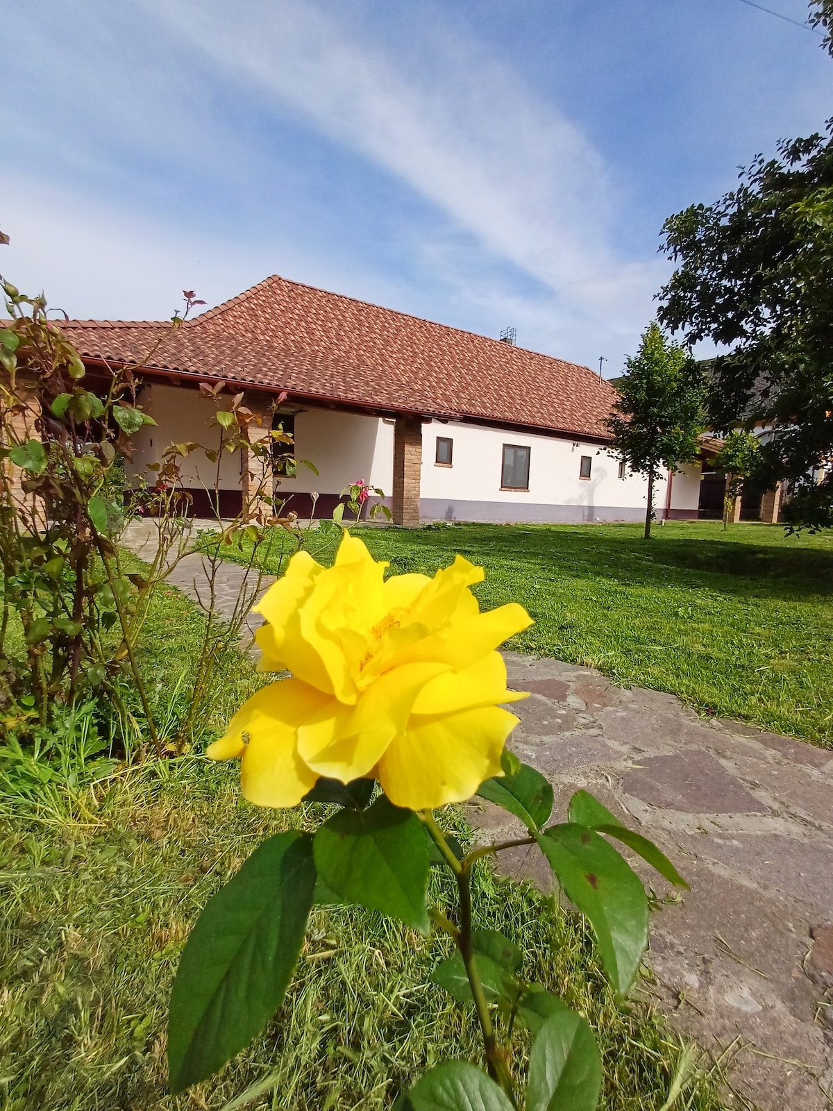 Vuelve a conectar con la naturaleza en nuestro sereno refugio ubicado en Zselici Hills. Perfecto para grupos y familias de hasta 12 huéspedes, disfruta de amplias habitaciones, acceso tranquilo al lago, noches de observación de estrellas, caminatas panorámicas y encanto rústico. Ya sea que quieras relajarte, explorar o simplemente respirar el aire del campo, ¡tu aventura comienza aquí! 🏞️🐾