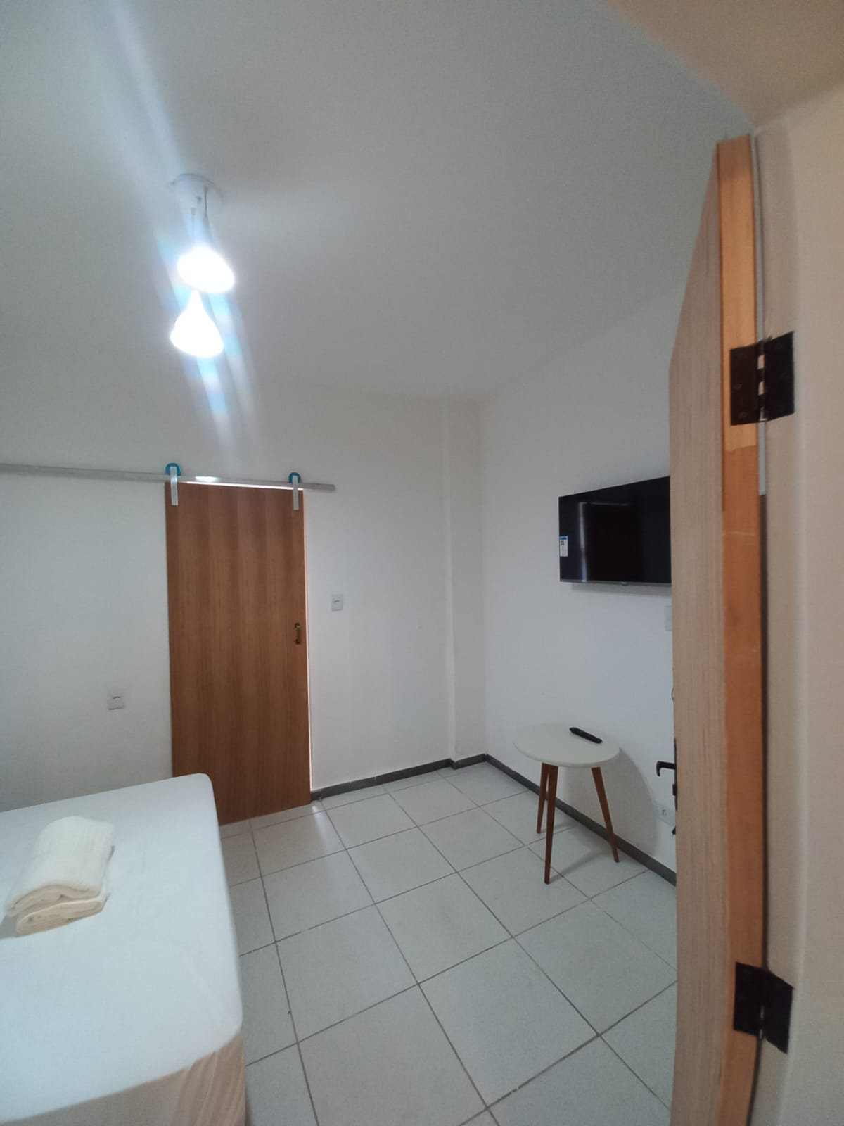 El apartamento tipo estudio está situado en el centro de Barão de Cocais, cerca de farmacias, tiendas, supermercados y la estación de autobuses.Dispone de salón, un dormitorio con cama de matrimonio y armario, cocina y un baño.Disponemos de ropa de cama, utensilios de cocina, microondas, tostadora, licuadora, ventilador y televisión.