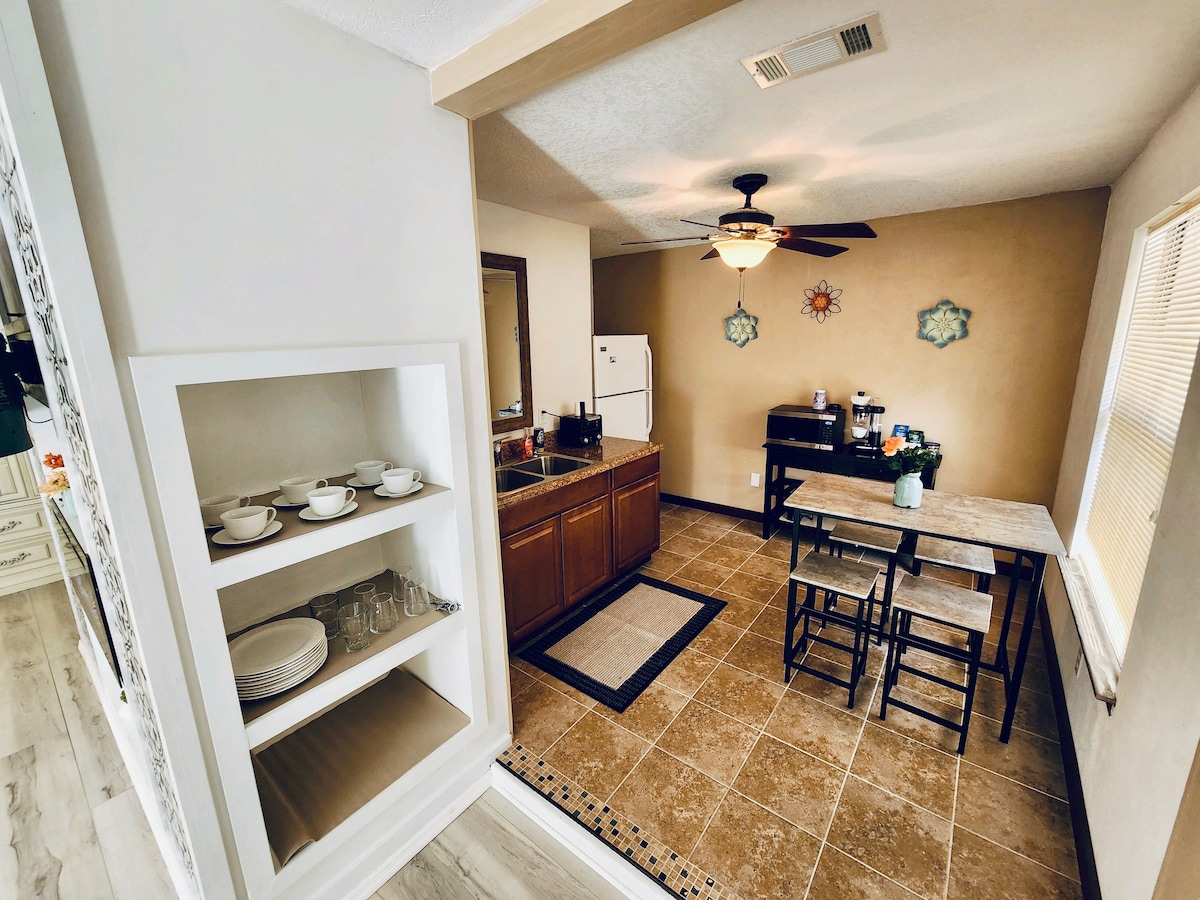 ¡FRENTE AL MAR! The Boat House es una residencia privada de 800 pies cuadrados construida directamente sobre el lago Dora que ofrece vistas panorámicas al lago. Situado en la famosa Boat House Row de Mount Dora, justo en el corazón del centro de Mount Dora, donde puedes salir de la cama y caminar unos pocos pasos hasta una de las pintorescas cafeterías. La Boat House fue una vez un cobertizo de hojalata para botes con suelos abiertos al agua y albergaba dos botes. Hoy en día, encontrarás muebles cálidos y acogedores, camas cómodas, una ubicación tranquila y puestas de sol todas las noches.