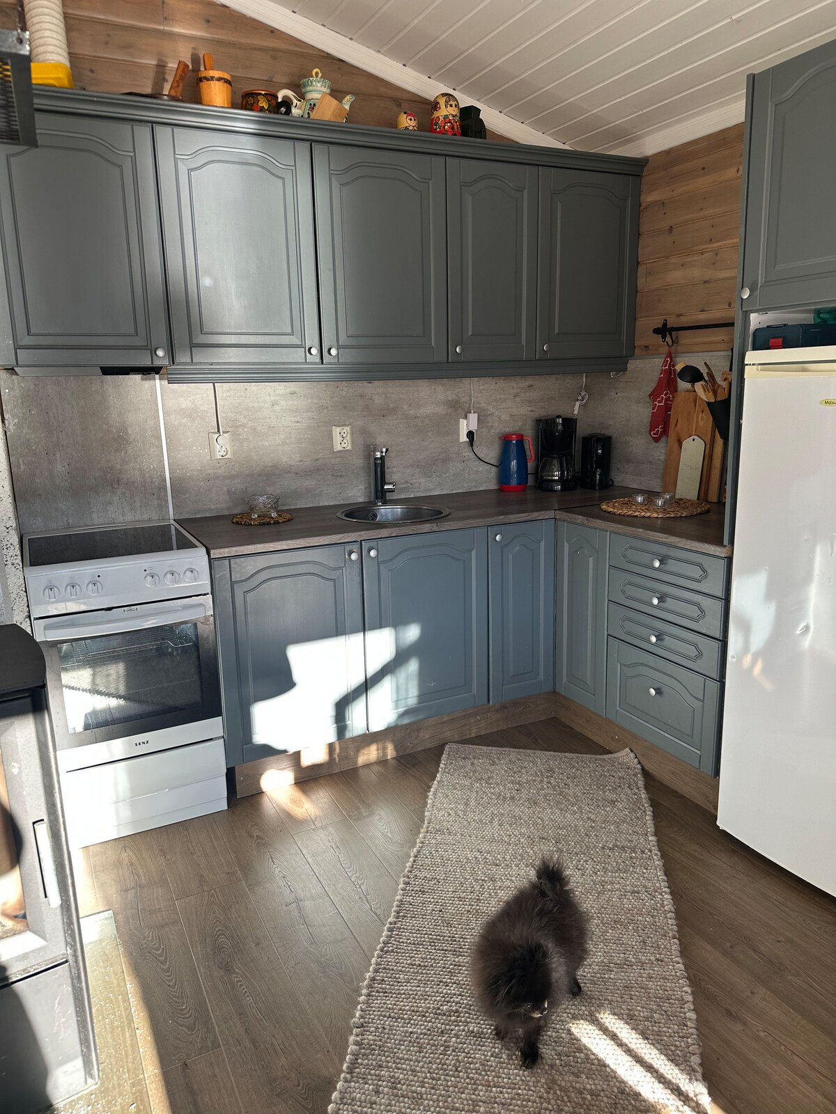 Disfruta del silencio y la paz de nuestra acogedora cabaña. Baja contaminación lumínica en la temporada oscura, y está fantásticamente ubicado para viajes tanto en verano como en invierno. Aquí puedes disfrutar de la sauna de leña después del final del viaje, cocinar buena comida y relajarte con una noche de televisión. Hay un mínimo de 2 días de alquiler. No hay agua corriente, pero hay unos 200 litros en jarras. La ducha se puede utilizar con agua caliente que se enciende en su propio contenedor de ducha en la casa de la sauna. Alquilar la sauna en sí cuesta 200, - además.
