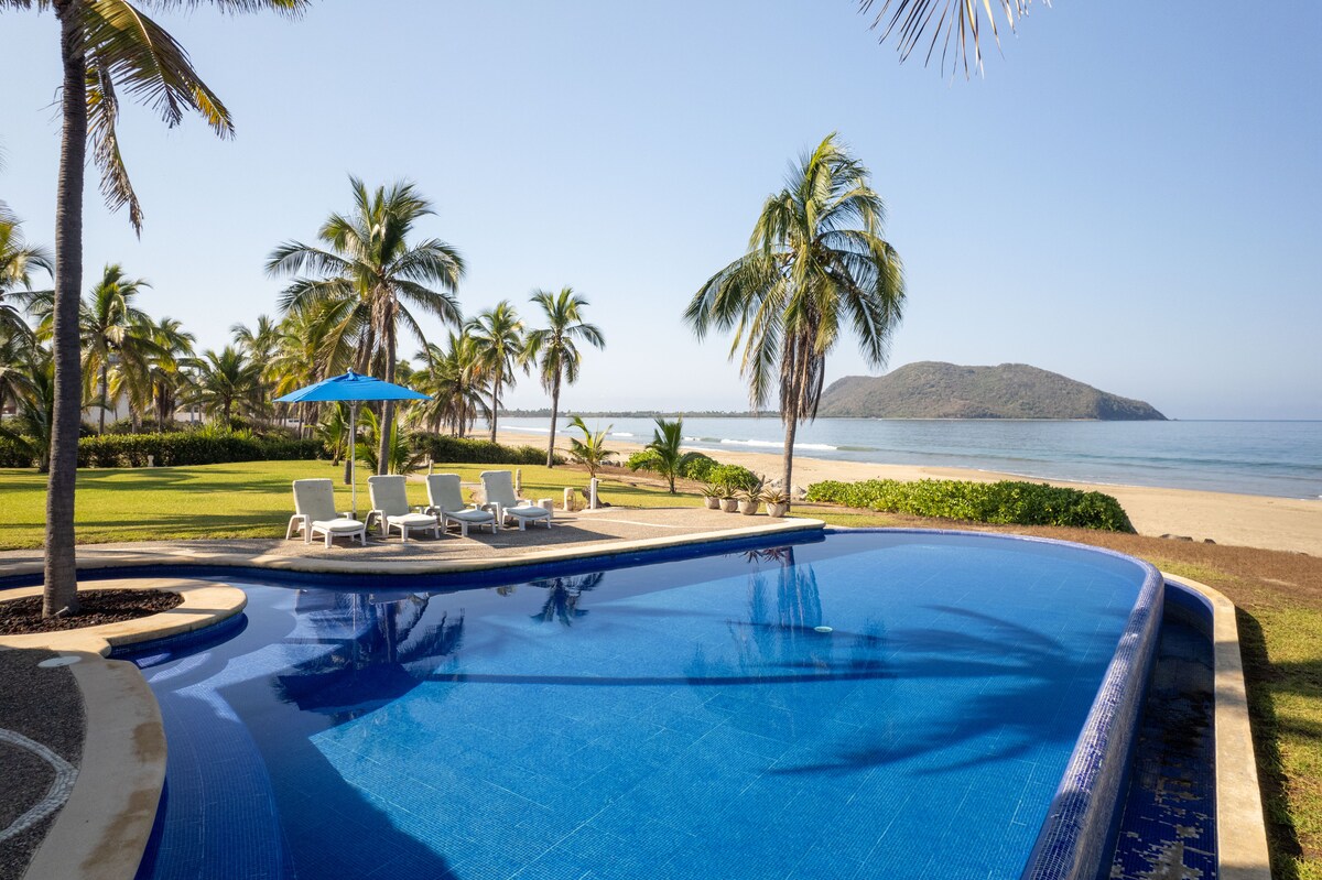 El protagonista de esta villa es el mar. Ubicada en playa blanca, una espectacular playa de arena dorada donde habitan tortugas, aves marinas y, entre noviembre y abril, ballenas jorobadas, podrás descansar viendo, escuchando y sintiendo ls escencia del océano en cada rincón. La villa cuenta con 4 habitaciones con baño completo, cocina, comedor y sala. También tiene terraza con sala y comedor, alberca privada, asoleaderos, y palapa en la playa. Es un lugar ideal para escapar en familia.