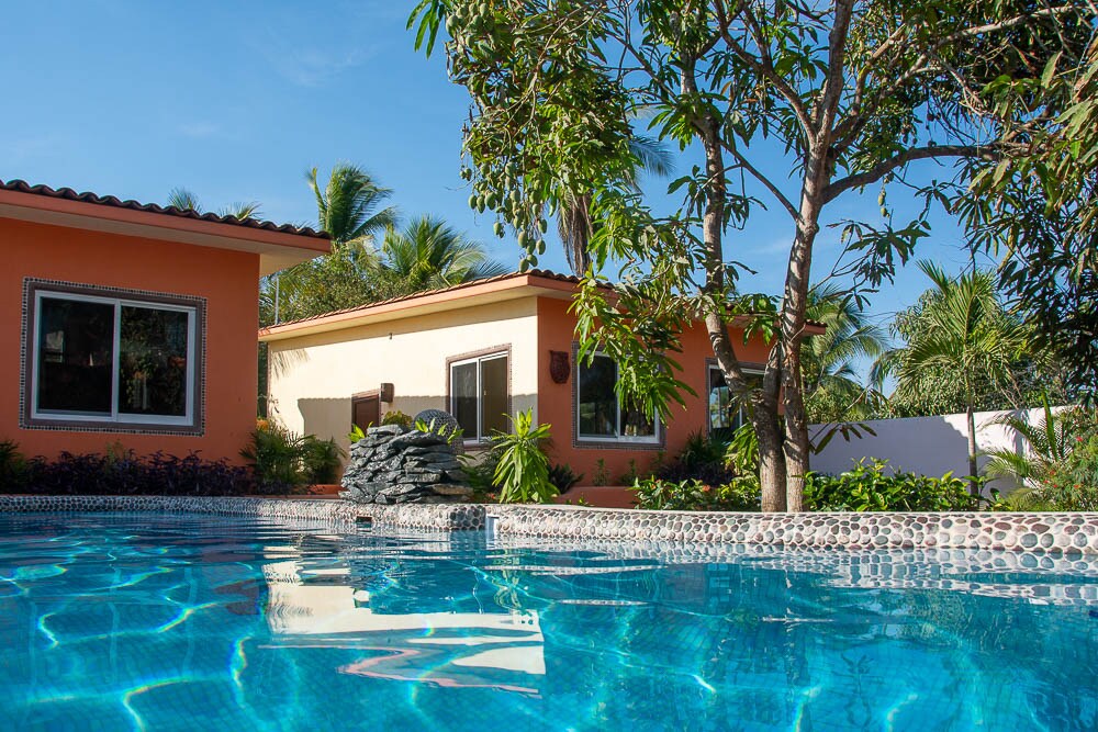 Vacation and snowbird paradise! Please see all listings airbnb.com/users/show/251077351 Private courtyard, AC, kitchen, STARLINK WiFi, secure parking, 2 pools, adults only 14+ & amazing tropical gardens. Private separate bedrooms available. Direct beachfront access to pristine Playa Blanca . 5 Restaurants within 500 meters and over 30 in village of Barra de Potosi. Sealy pillowtop king mattress. Public buses . Meals prepared for guests. BBQ & private loungers. Grocery & free airport pickup.