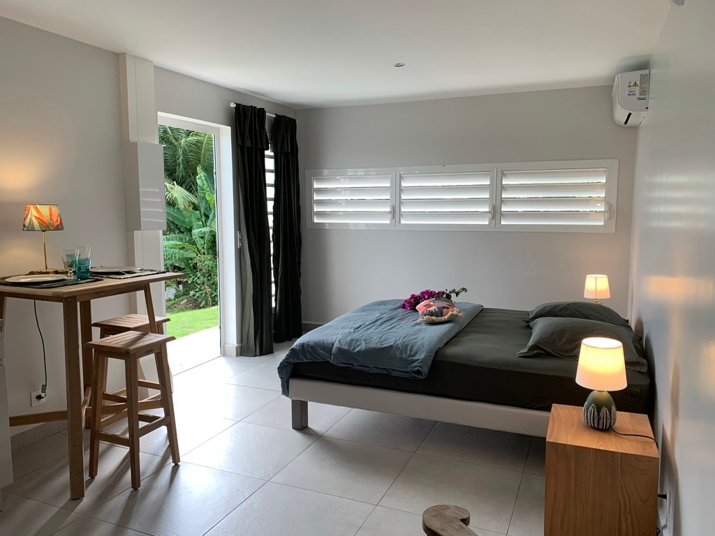 Estudio nuevo en la parte baja de una villa con vistas a la montaña y pequeñas vistas al mar, con vistas al jardín. El lugar es tranquilo y apacible. Situado a igual distancia entre la tierra alta y la tierra baja, podrá disfrutar de las playas, ríos y montañas de la isla. Cerca de todas las comodidades como panaderías, farmacias, centros comerciales y otros . También se puede ir andando a las tiendas más cercanas.
