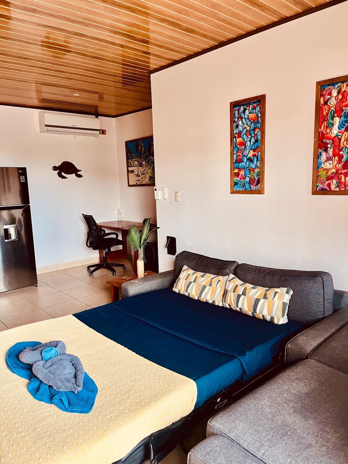 Stay in the heart of Bocas Town at this bright and comfortable studio – perfect for couples or solo travelers (with space for one extra). • Queen bed + sofa bed (sleeps 2–3) • Fully equipped kitchen • A/C, Starlink Wi-Fi, Netflix & hot water • Walk to restaurants, boat taxis, cafés & Bolivar Park Located in Bocas Condos, this cozy top-floor studio offers great airflow and sunset views - a relaxing home base for your island adventure.