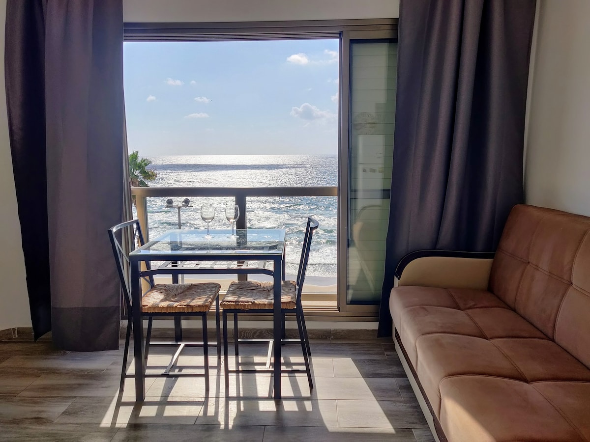 Spectacular panoramic view with amazing sunsets!!! The minute you walk in you would go WOW!! It’s just amazing!! Top of the line designed and renovated a large 55M~ studio on 6th floor, 9M of large windows overlooking the sea from every corner of the apartment, a feeling of a private beach with your privacy.. There is everything you need for a long stay. located in the most desirable section of Bat Yam. Steps to magnificent beaches includes kids beach, coffee shops, groceries, restaurants..