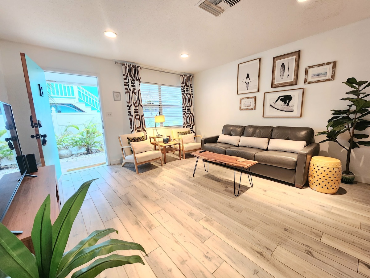 Just a short walk to the beach makes this a great beach getaway for couples or families. On your way you can stop at the Kooky Koconut for lunch, an awesome milkshake or a variety of snacks. With a totally new renovation in 2019, this unit is in updated, very clean and worry free condition. This cottage is located in a quiet residential neighborhood and a great place to relax. Common laundry on shared screened porch. Dogs allowed (extra $45 cleaning). Easy refund policy. Level 2 EV charger