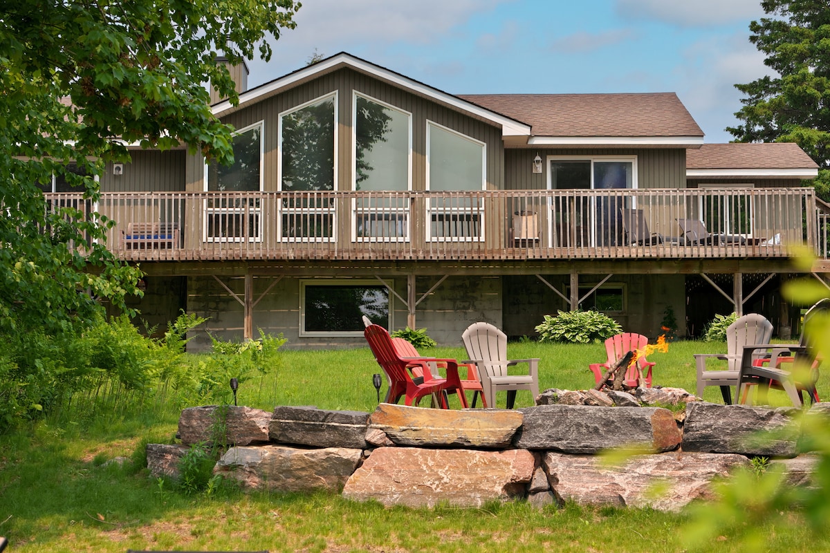 Trae a toda la familia a esta casa de campo privada frente a la playa recién construida (2022). Increíble vista al lago al atardecer de 180°, amplia terraza, más de 200' de playa privada de arena, muelle, chimenea. Disfruta de dos áreas de entretenimiento con TV y hockey de mesa. Enorme cocina de cuarzo personalizada moderna + 2ª nevera. Vistas al atardecer desde el dormitorio principal con baño privado, vestidor y puerta a la terraza. Internet rápido Starlink, oficina, 9 camas (camas sólidas hechas a mano). 2 kayaks, 1 canoa y chalecos salvavidas. Básicos, ropa de cama y recogida de basura incluidos.