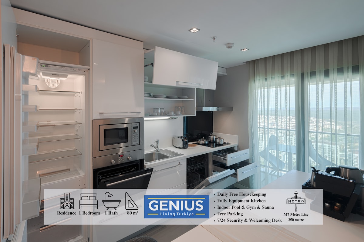 Con el privilegio de Residences, tendrás todas las instalaciones en el concepto de hotel, como sauna, gimnasio y piscina cubierta. Debajo del edificio, tienes todas las instalaciones para encargarte de todos tus asuntos, como restaurantes, supermercado, cafetería, farmacia, banco, clínica dental y parada de taxis. A solo 3 minutos a pie de la estación de metro y a 1 minuto de la parada de autobús. Hay aparcamiento cubierto en el edificio. Con una vista única de Estambul, el apartamento también cuenta con un balcón. Wifi de alta velocidad gratuito.