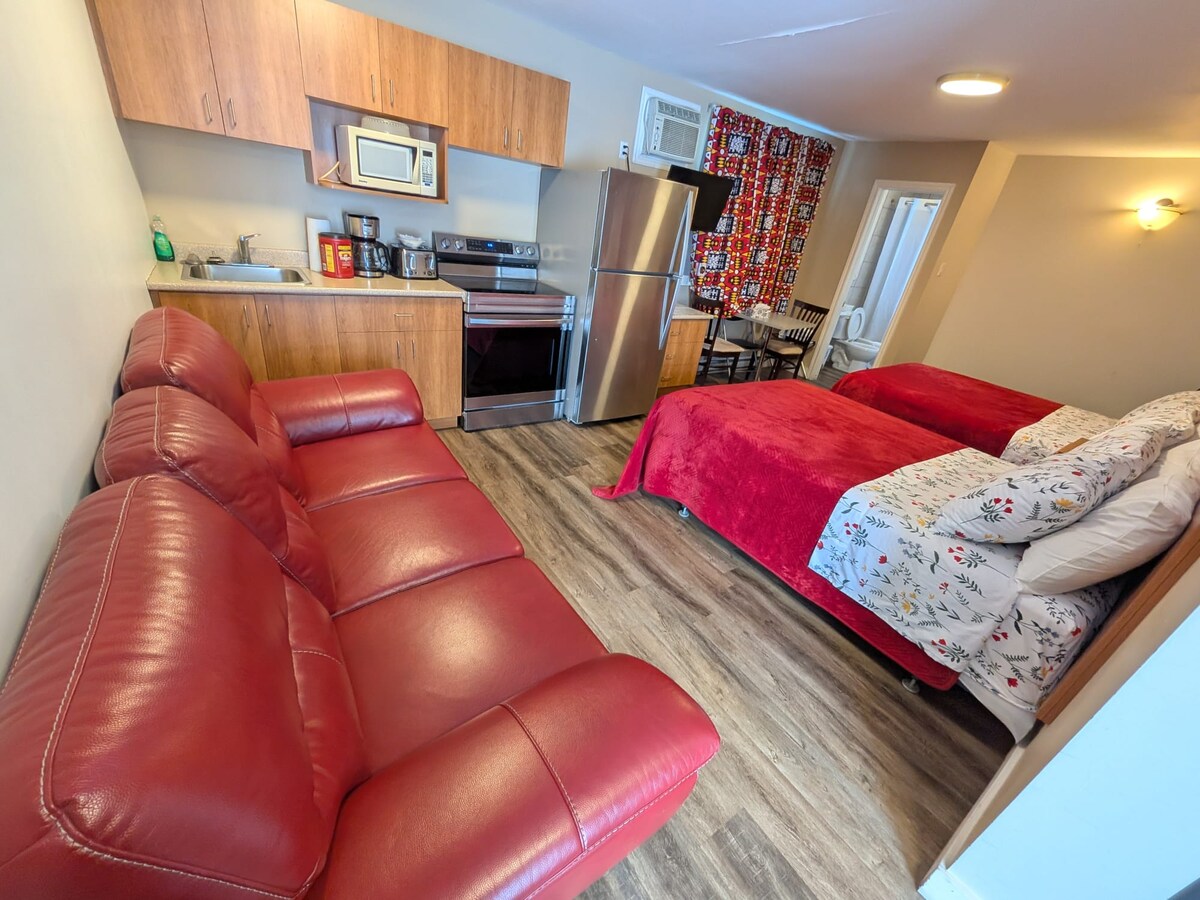 Relájate y relájate en el Auberge Motel Drakkar ¡Te damos la bienvenida a Auberge Motel Drakkar, tu refugio perfecto en Shawinigan! Disfruta de un spa, jacuzzi y piscina climatizada, ideal para relajarte. Nuestras acogedoras y bien equipadas habitaciones incluyen cómodas camas, baño privado, wifi gratuito y televisores de pantalla plana. Ubicado cerca de La Cité de l'Énergie y Parc National de la Mauricie, ofrecemos estacionamiento gratuito, limpieza diaria y un ambiente tranquilo. Ya sea por negocios o por placer, reserva tu estadía hoy mismo para mayor comodidad y conveniencia