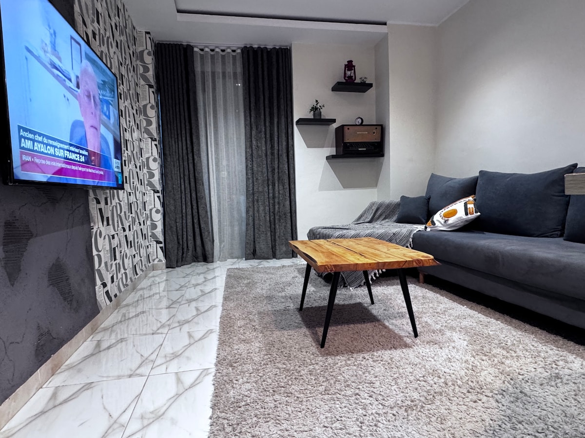 Este alojamiento (residencia de alto standing) elegante, espacioso y soleado es perfecto para unas vacaciones relajantes (turismo, luna de miel, negocios) Estado nuevo totalmente amueblado 2 dormitorios, cocina equipada, 2 balcones con vistas despejadas sin vecinos enfrente. (espacio al aire libre) totalmente climatizado, calefacción central agua, fría y caliente 24/24. Conexión a internet de fibra de muy alta velocidad doble (2) ascensores funcionales las 24 horas aparcamiento incluido Urbanización hipersegura con código digital. comodidad garantizada. Bienvenido a Béjaïa