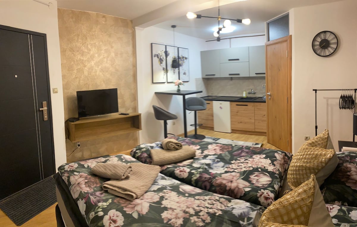 Agradable, nuevo, maravilloso y acogedor apartamento estudio con estacionamiento propio en el centro de la ciudad de Osijek con vistas a la catedral y al parque Zrinjevac. El apartamento es nuevo y con muebles nuevos, aire acondicionado y conexión wifi gratuita.