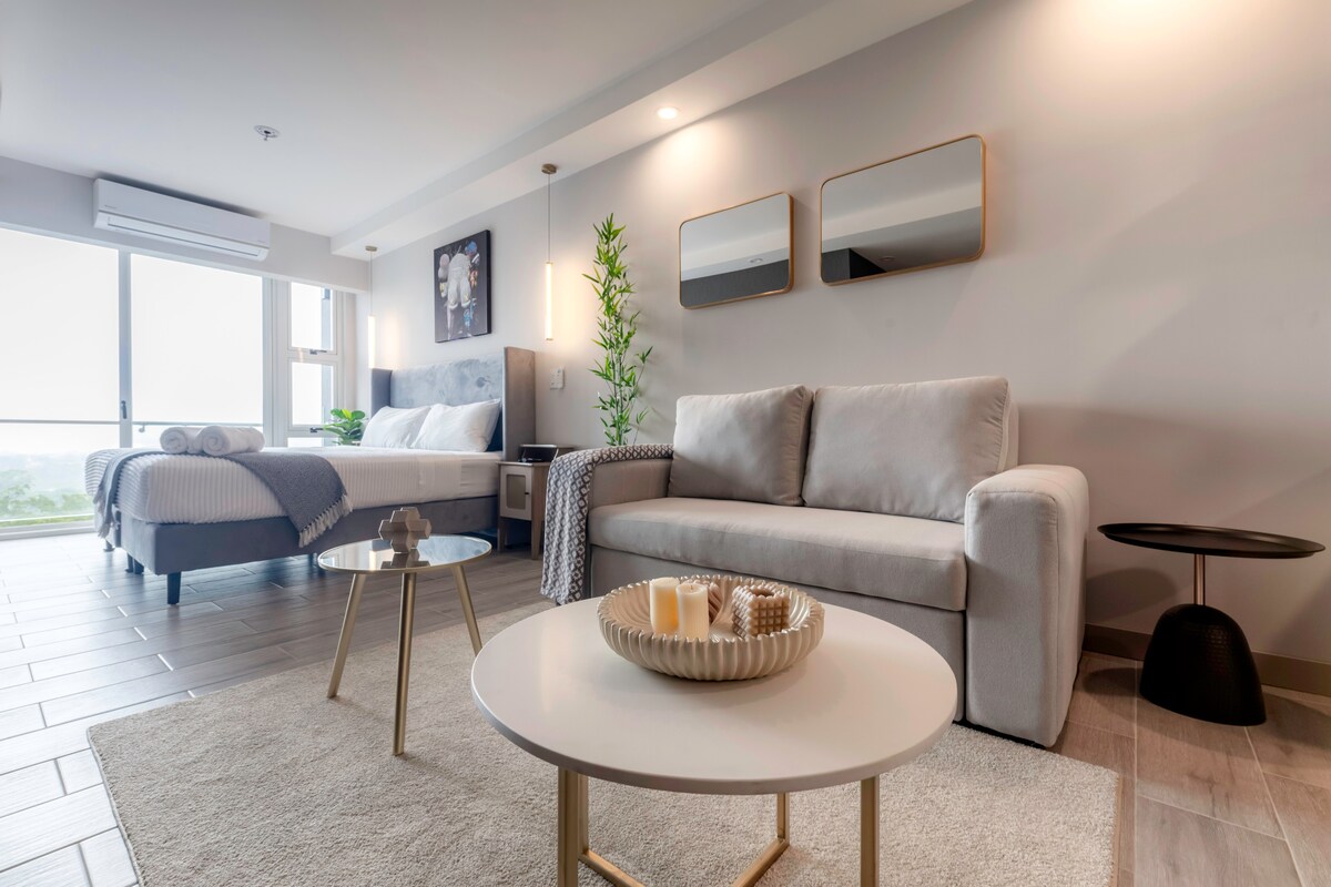 CR Stays Welcomes you to this fully-equipped studio just 4 miles from Juan Santamaría Airport. Enjoy breathtaking views of the Escazú mountains, a king bed, queen sofa bed, fast Wi-Fi, and air conditioning—ideal for 4 guests. The building boasts a gym, pool, BBQ terrace, private cinema, and meeting rooms. Minutes from Plaza Real Cariari’s shops and restaurants, and located in a prime business hub. 24/7 security for a safe, stylish, and comfortable stay.
