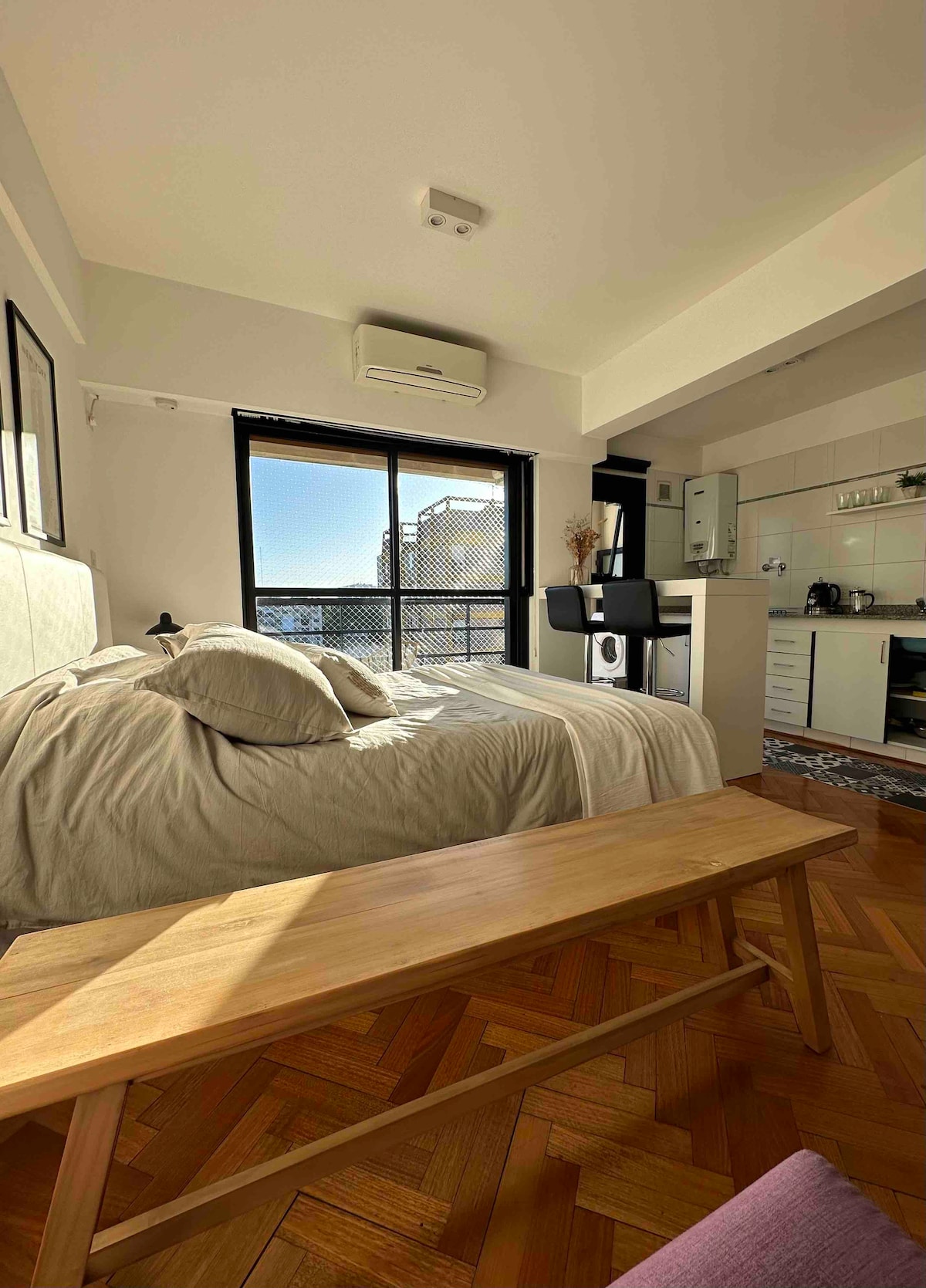 Este monoambiente único de estilo industrial ofrece un espacio cómodo, moderno y funcional, diseñado al detalle. Ideal para 2 huéspedes, todo equipado a nuevo, mucho espacio de guardado, luminoso y silencioso. Ubicación excepcional en uno de los barrios más lindos de la Capital Federal de Buenos Aires. Rodeado de espacios verdes, una hermosa plaza, confiterías, supermercados, y todo lo necesario para disfrutar al máximo tu estadía.