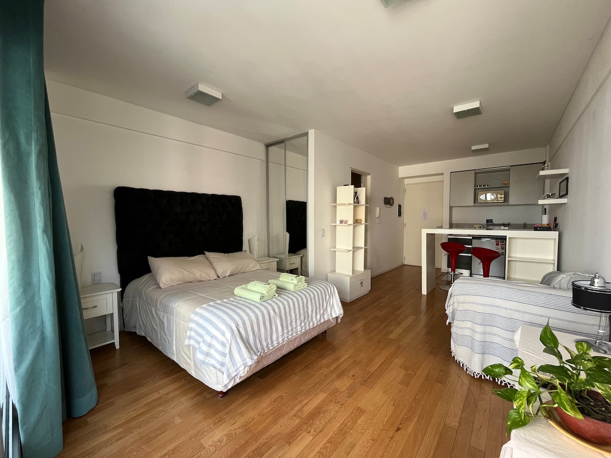 LA MEJOR UBICACIÓN EN PALERMO HOLLYWOOD Excelente estudio reformado en Enero 2023 equipado con alta calidad. El complejo cuenta con amplios espacios comunes: piscinas y solarium en la terraza, jacuzzi exterior, sauna, gimnasio, laundry y seguridad 24h DESCUBRE BUENOS AIRES Rodeado de restaurantes y bares podrás disfrutar a pocos pasos de la cultura gastronómica, artística y nocturna de la ciudad OPCIÓN CAMAS: elige dos camas individuales ó una cama matrimonial Cochera privada en el subsuelo