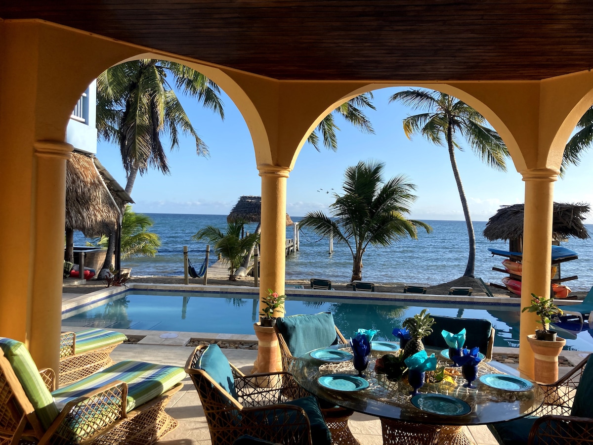 Retiro aislado en el lado sur con vistas al amanecer sobre la barrera de coral Bella Mar es una casa frente al mar con una villa superior de 3 dormitorios y 4 baños y 2 - 1 dormitorio y 1 baño para un total de 5 dormitorios y 6 baños. La propiedad incluye una gran piscina privada y un montón de área de estar al aire libre, incluyendo una gran palapa junto a la piscina. Ubicado a 3 1/2 millas al sur de San Pedro Belice, a 15-20 minutos en carrito de golf del centro.