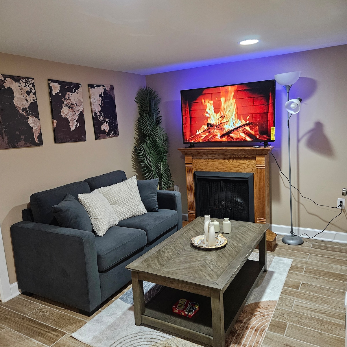 ¡Este alojamiento con estilo es perfecto para cualquier persona que quiera escaparse! 3 habitaciones, sala de estar, dormitorio y pequeña sala de entrenamiento. Este espacioso Airbnb viene con un sistema de entretenimiento totalmente equipado, equipo de entrenamiento, chimenea y wifi superrápido. Este Airbnb se encuentra en ubicaciones privilegiadas como a 20 minutos de Jones & Long Beach, a 15 minutos de Nautica Mile, del centro comercial Roosevelt Field, a 10 minutos del parque Eisenhower, a 5 minutos del Coliseo de Nassau, a 20 minutos del estadio USB y mucho más. Tu baño es privado.