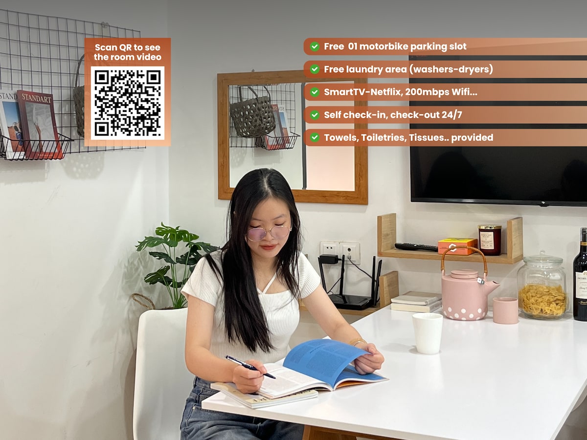 Te damos la bienvenida a nuestro nuevo estudio que combina un estilo acogedor y boho. Tu familia estará cerca de todo cuando te hospedes en este lugar céntrico - Situado en el corazón de HoChiMinh, es tranquilo tanto de día como de noche debido a que está en el cuarto piso. - Tener una vista impresionante desde la gran ventana del lado de la calle. Parecía las fotos, lleno de comodidades necesarias, excepcional por proyector Full HD - Sin toque de queda - Accesibilidad 24/7 con instrucciones claras - Wifi privado y de alta velocidad, totalmente climatizado.