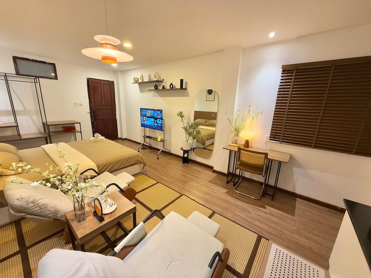 Apartamento tipo estudio con un diseño único en un encantador callejón en Saigon Center. El estudio está ubicado en el segundo piso de una casa adosada, cuyo primer piso es la encantadora cafetería BeanThere. Solo se tarda unos minutos en llegar a las atracciones y a la vida nocturna. Además, también hay una cocina para cocinar comidas básicas. Un desayuno (01 comida y 01 bebida) / huésped / noche en la cafetería Beanthere. Ofrecemos limpieza gratuita para reservaciones de más de 4 noches. Si es necesario, puedes notificarlo con 1 día de anticipación.
