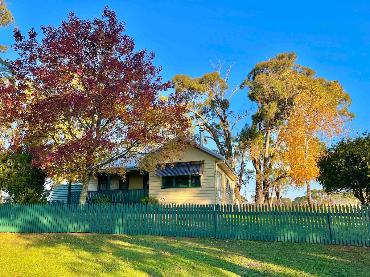 'Top of the Hill House' es una casa de campo rural de 120 años situada en nuestra granja de pasatiempos en la cima de una colina en Goorambat, rodeada de impresionantes vistas a las montañas, a solo 15 minutos en auto de Benalla. Esta cabaña rústica ha conservado muchas de sus características originales, está limpia y cómoda, y está orientada al este para que puedas ver los magníficos amaneceres. Es un refugio rural perfecto para parejas, familias o grupos pequeños... ¡y también tenemos una piscina que puedes usar en verano! También tenemos paneles solares.