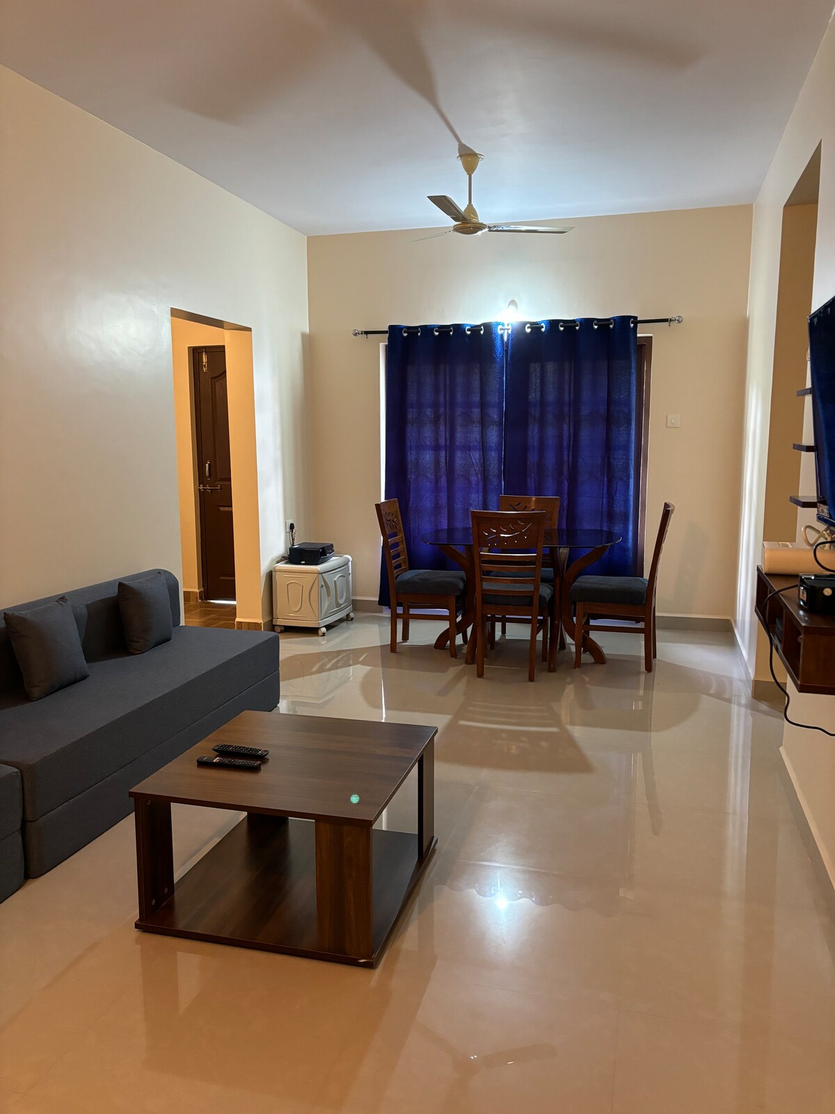 Peaceful hideaway in Navelim near Blasco Executive Centre. Just 5 minutes from Margao Railway Station yet quietly tucked away from city life. Surrounded by lush greenery and mountain views. Modern 1BHK with a cozy living area, comfortable bedroom, clean bathroom, and a fully equipped kitchen with an induction stove. Ideal for couples or families. We’re happy to share trusted references for bike and car rentals if needed. Enjoy calm sunsets and authentic Goan comfort at Blasco Majestic Estates.