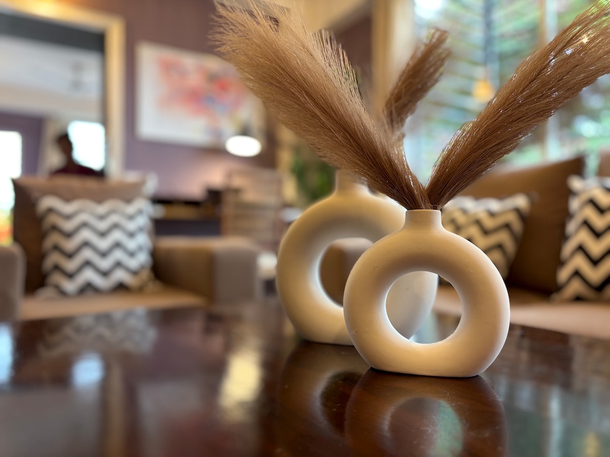 ✨ Lujo 4BHK | Vista verde | Televisor inteligente de 65 pulgadas + Netflix | Wifi rápido | Respaldo de energía Iluminado por el sol, espacioso 4BHK envuelto en vegetación, ideal para familias, amigos y estancias de trabajo. Interiores cuidadosamente diseñados, acogedoras habitaciones, ambiente de café en el balcón, futbolín/juegos de mesa y una cocina totalmente equipada para comidas fáciles. Tranquilo, limpio y cómodo, hecho para una estadía verdaderamente tranquila. ⚠️ No se permiten fiestas ni música alta (horario de silencio después de las 10:00 p. m.).