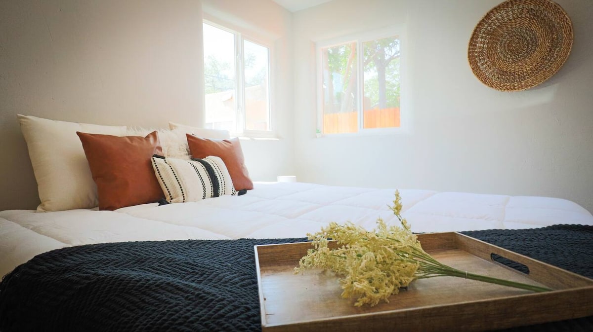 Casa de adobe tranquila con encanto de NM. Encuentra un lugar para relajarte en esta morada decorada con buen gusto. Perfecta para 2 parejas o una familia de 4 y ¡trae a tu perro! La casa cuenta con un estilo moderno de Nuevo México, suelos de madera brillante, paredes preciosas y un espacio de estar al aire libre. Ubicada a pocos minutos de Nob Hill, esta gran casa ofrece acceso rápido y cómodo a las mejores atracciones locales, restaurantes y tiendas. Disfruta de la ciudad como un habitante más desde la comodidad de tu propio refugio privado.