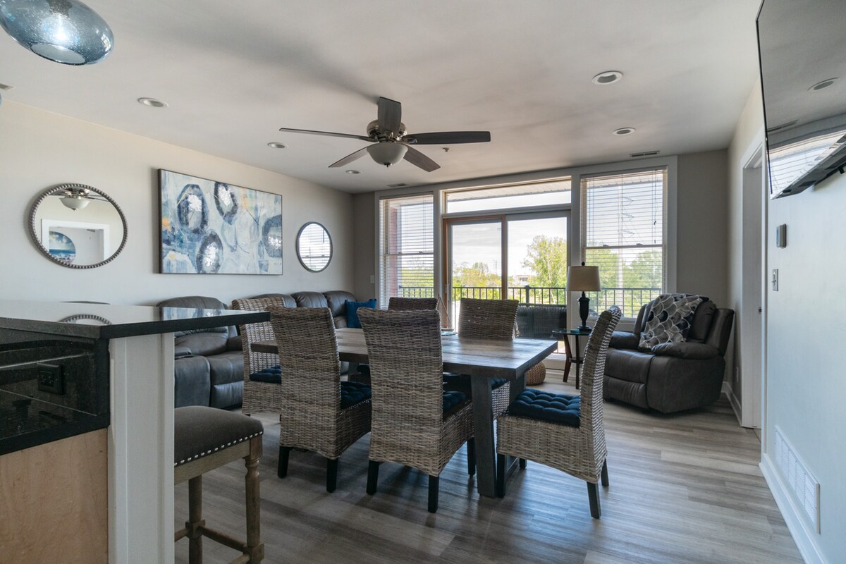 Disfruta de la belleza del suroeste de Michigan desde nuestro apartamento de 3 dormitorios y 2 baños recientemente reformado con impresionantes vistas al río. Perfecto para un máximo de seis huéspedes, el espacio cuenta con dos camas tamaño king y una cama tamaño queen para la máxima comodidad. Disfruta de cenar en una gran selección de restaurantes locales o disfruta de tu cocina casera en nuestra cocina con electrodomésticos de primera línea. Relájate en tu balcón privado, bebiendo café o vino mientras disfrutas de las vistas al puerto deportivo. ¡Tu escapada perfecta te espera!