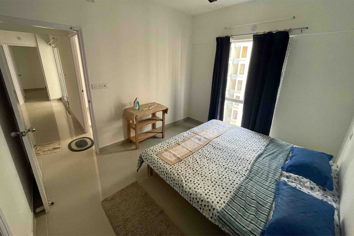 Relax with the whole family or your gang of friends at this peaceful, thoughtfully curated hive, away from the noise, yet not deprived of lively energy of the neighbourhood. A spacious furnished apartment for you to organise as per your individual preference/ convenience, like a blank canvas. This property is a part of a beautifully planned contemporary society that nurtures the freshness of green nature, amicable interactions & personal space. Book an Uber/ Ola or take the bus.
