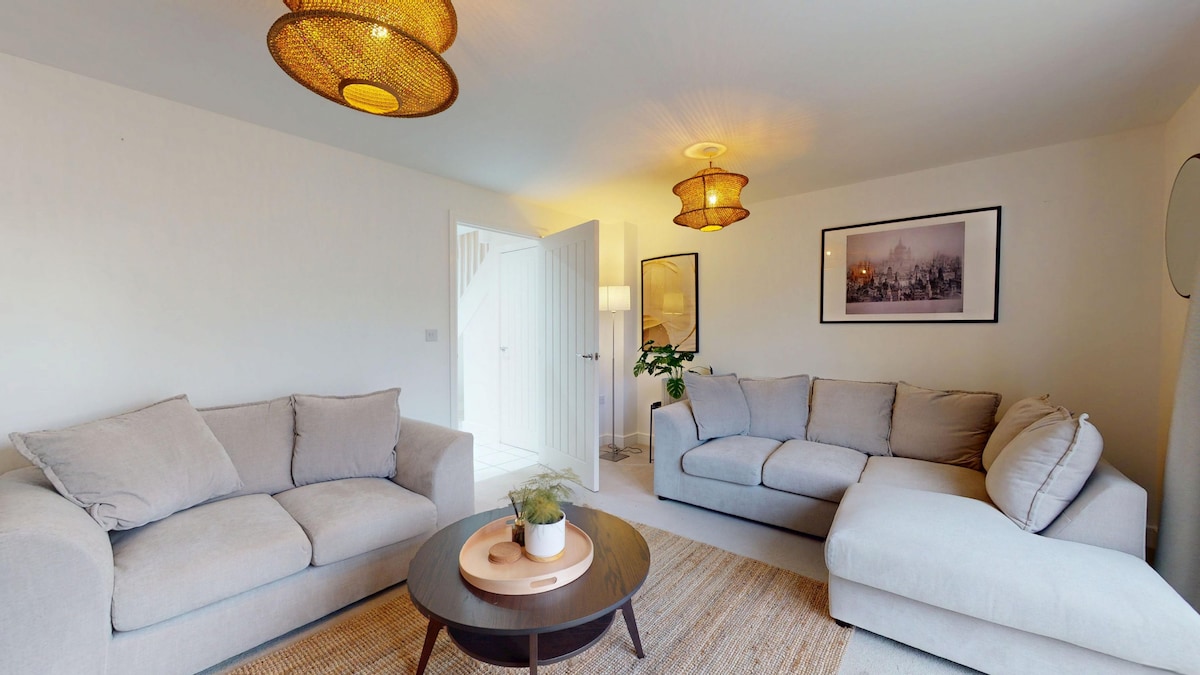 ¡Te damos la bienvenida a nuestro encantador refugio en Bicester! Esta espaciosa casa de 4 dormitorios y 2,5 baños ofrece comodidad y conveniencia para familias, amigos o viajeros de negocios. Con 2 camas tamaño king y 3 camas individuales, hay espacio para que todos se relajen. Disfruta de Netflix y Disney+ gratis, una cocina totalmente equipada y espacios de estar luminosos y elegantes. Ubicado cerca de Bicester Village, Oxford, tiendas y restaurantes, es el punto de partida perfecto para tu estancia. Crea recuerdos duraderos en esta acogedora y bien equipada escapada.