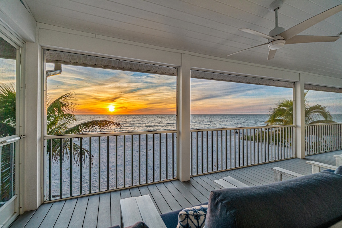 <b>Lujo frente al golfo al atardecer – 4 dormitorios/4,5 baños + loft, ascensor y acceso a la playa</b> Acceda directamente a las arenas blancas de Bonita Beach desde esta propiedad de 4 habitaciones/4,5 baños + loft, con 325 m² de superficie habitable y un porche con mosquitero. Recientemente renovado con baños actualizados, dormitorios y salas de estar renovados, muebles y decoración costeros, cuenta con ascensor privado, dormitorios con baño, loft y amplias vistas al Golfo. Desde delfines al amanecer hasta impresionantes puestas de sol, esta es la vida frente al Golfo en su máxima expresión.