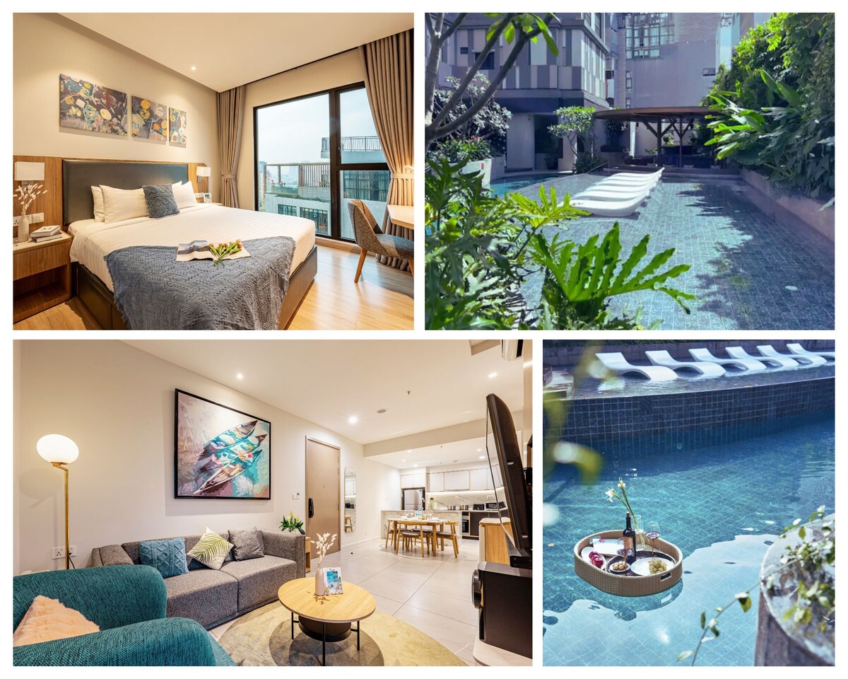 El espacio para alquilar se puede utilizar para la estancia, el trabajo y las reuniones. La habitación cuenta con instalaciones completas para trabajar y hacer turismo, como wifi, sala de reuniones, máquina de impresión, TIVI y proyector. Un sofá cama inteligente permite a los huéspedes alojar durante la noche con tres personas o permitir que los huéspedes tengan una habitación de doble uso que se puede utilizar para el dormitorio cuando sea necesario, pero que se utiliza como oficina para trabajar en otros momentos. Sky Center tiene muchos supermercados, restaurantes, piscina, gimnasio, lavado, servicios de estacionamiento para los huéspedes.