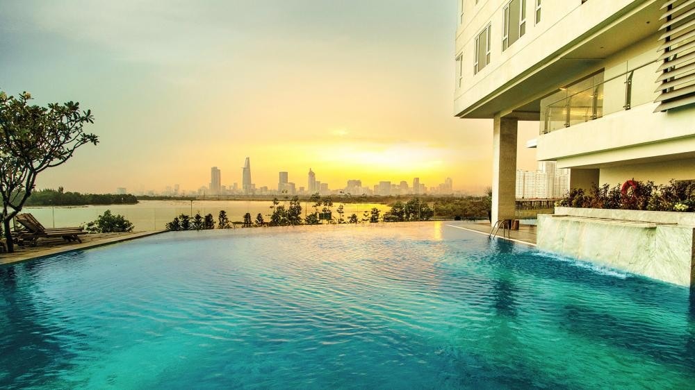 Acogedor 1Br, Thao Dien, piscina infinita, gimnasio gratuito, sauna
