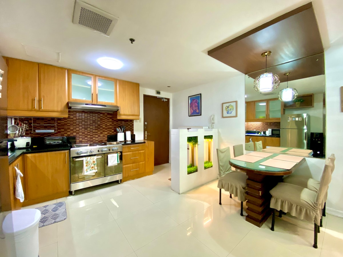 Increíble unidad en el exclusivo Milano Residences. Justo al lado del centro comercial Century City y la vida nocturna y la comida de Poblacion en tu puerta. ¡Patio ultraprivado con piscina privada! (¡Vaciamos y limpiamos la piscina para cada reserva!) Disfruta de internet rápido (¡hasta 200 mbps!) /Netflix mientras disfrutas cómodamente del gran espacio (120 metros cuadrados) que ofrece esta unidad. La piscina y la sauna compartidas de la planta baja están disponibles de martes a domingo, de 7:00 a 19:00 horas. La piscina permanecerá cerrada durante el día de limpieza (lunes).