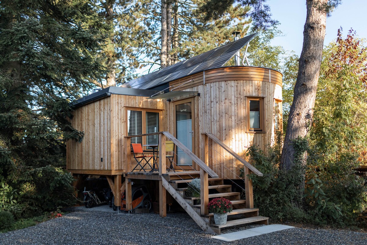 Con Logis Freyja, ofrecemos la oportunidad de experimentar una minicasa en gran parte autosuficiente en Suiza. En 33 m2, Freyja ofrece una vida ecológica, así como una comodidad acogedora para las vacaciones o el descanso. Tiene una cama doble sólida, una cocina completa, un comedor y un rincón de trabajo, un baño con lavabo, una ducha y un inodoro de compostaje de separación. Freyja tiene un concepto de iluminación especial, que se adapta al espacio y a las condiciones de luz con un arquitecto ligero.